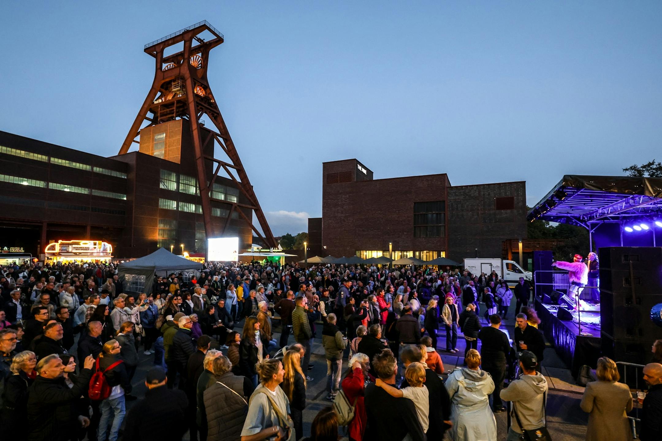 Erst einem Konzert lauschen, dann ab ins Museum, danach das Glück beim Gewinnspiel herausfordern, mit einem echten Bergmann die im Original erhaltenen Übertageanlagen unter die Lupe nehmen und zum Abschluss an der DJ-Bühne den Abend unter freiem Himmel ausklingen lassen – zahlreiche Angebote waren zum Zechenfest am Samstag, 27., und Sonntag, 28. September 2025, kostenfrei. Der Höhepunkt am Samstagabend: das große Feuerwerk, das den Nachthimmel eindrucksvoll in bunten Farben erhellte. Zum ersten Mal startete das Feuerwerk direkt auf dem Zechengelände und sorgte somit für neue Perspektiven auf den wohl beliebtesten Programmpunkt der Besucherinnen und Besucher.