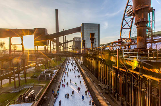 Einzigartige Eisbahn inmitten der spektakulären Industriekulisse der Kokerei Zollverein