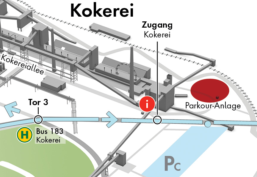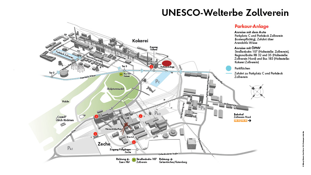 Die circa 600 m² große Außenanlage befindet sich auf dem Gelände der Kokerei Zollverein und ist öffentlich zugänglich. Die Kombinationen aus Würfeln, Stangen und Wandflächen bieten eine Herausforderung für Traceure aller Niveaus – geeignet für für sportbegeisterte Menschen ab einem Alter von etwa 8 Jahren. Die Anlage ist von Frühjahr bis Herbst abends bis 22 Uhr funktional beleuchtet.