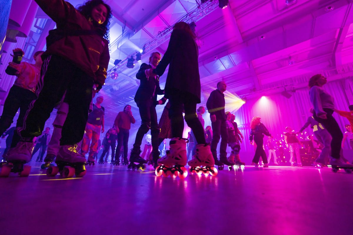 Die einstige Zentralwerkstatt der Zeche Zollverein verwandelt sich in den NRW-Osterferien vom 28. März bis zum 12. April 2026 wieder in die große, glitzernde Zollverein-Rollschuhbahn! Auf über 600 Quadratmetern kommen in der heutigen Halle 5 alle ins Rollen.