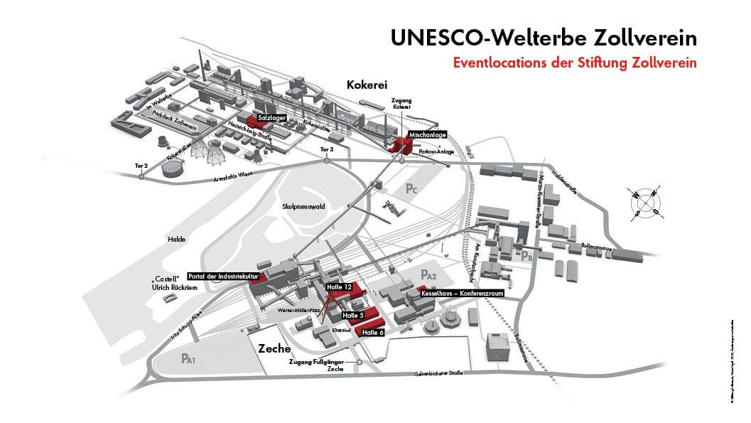 Unser Team professioneller Veranstaltungsmacher berät Sie gerne bei der Umsetzung Ihres Events und liefert auf Wunsch Ausstattungen sowie Veranstaltungstechnik aus eigenem Bestand oder vermittelt bewährte Leistungspartner. Natürlich können Sie auch Partner Ihrer Wahl einsetzen, für die Hallen und Räume der Stiftung Zollverein besteht keine Vertragsbindung im Dienstleistungs-, Ausstattungs- oder Cateringbereich. Das breite Spektrum auf dem Welterbe Zollverein bietet für Veranstaltungsplaner nahezu unbegrenzte Möglichkeiten und überzeugt mit flexiblen und multifunktionalen Lösungen für Events jeder Größe und Art wie Kongresse, Tagungen, Konzerte, Galas oder Produktpräsentationen.