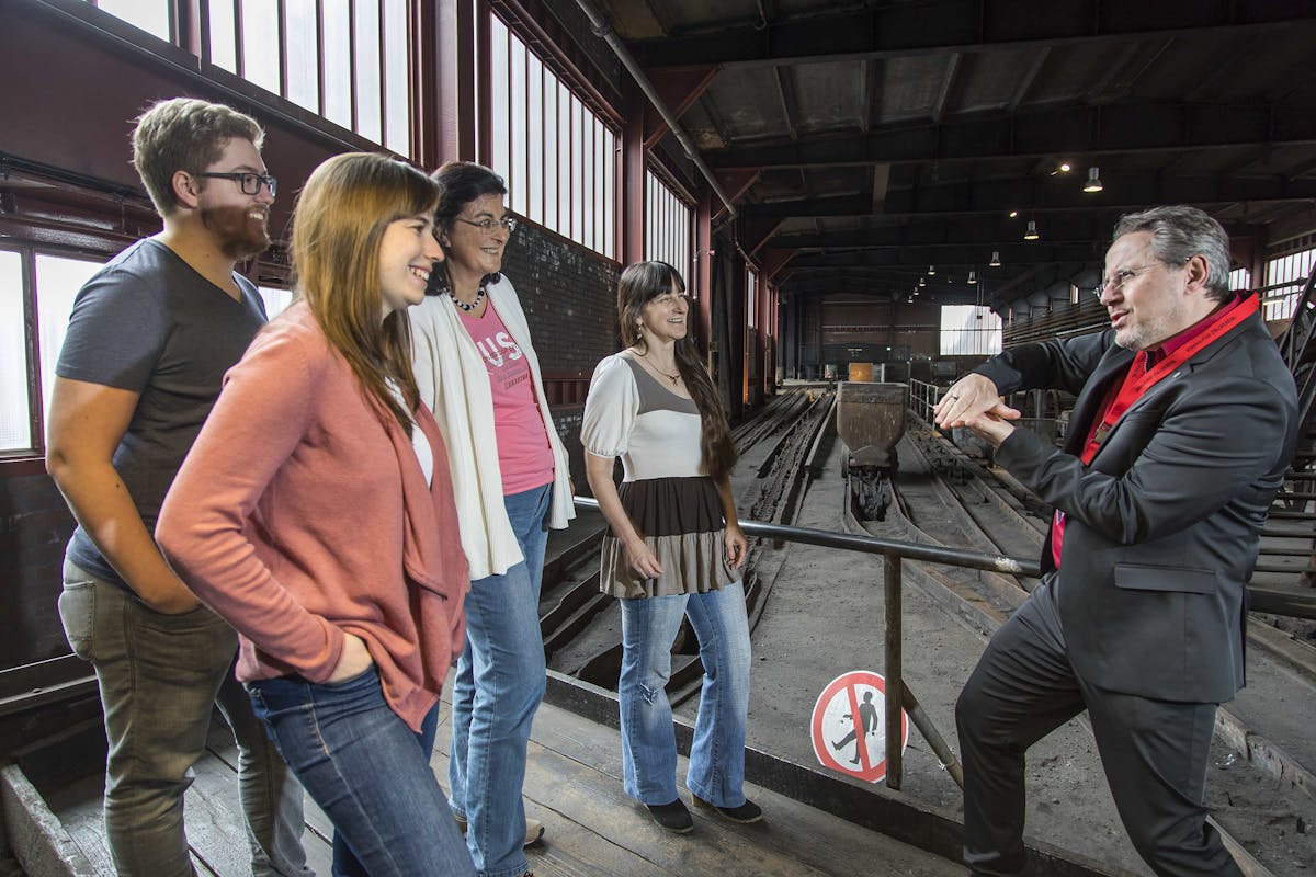 Von der Schachthalle, in der die Kohle ankam, durch die Produktionshallen und Werkstätten: Mitten in den authentisch erhaltenen Übertageanlagen von Zollverein Schacht XII erfahren gehörlose Besucherinnen und Besucher in Deutscher Gebärdensprache, wie die einst größte und leistungsstärkste Steinkohlenzeche der Welt funktionierte sowie Wissenswertes über die Arbeits- und Lebensbedingungen der Bergleute auf Zollverein. Die Führung ist für alle Menschen geeignet, die die Deutsche Gebärdensprache beherrschen, jedoch nicht für Gäste mit Mobilitätseinschränkungen.