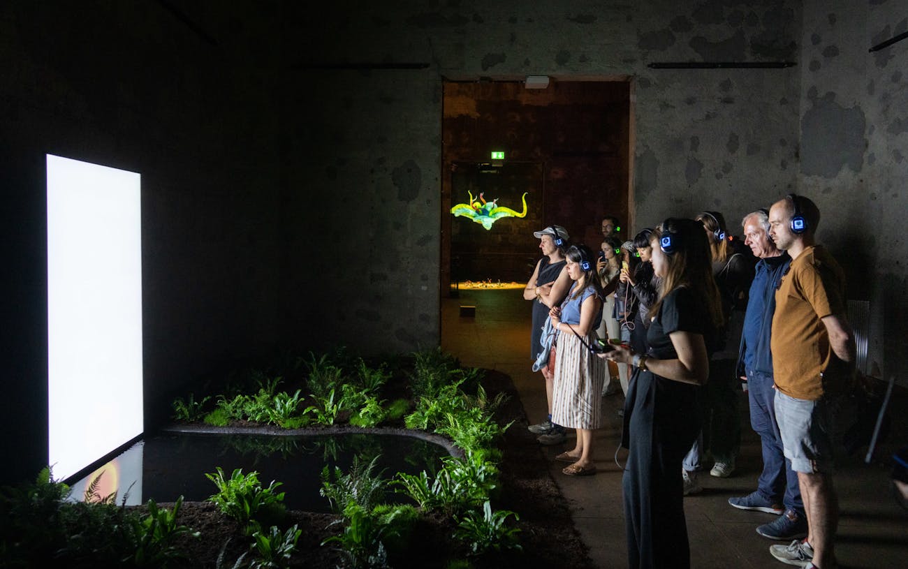 Besucher:innen erwartet in der Mischanlage unter dem Titel „Hypernatural Forces“ ein außergewöhnliches Ausstellungserlebnis: Sie begegnen einem freilaufenden Rudel von Roboterhunden, hören den betörenden Gesang invasiver Pflanzen auf Zollverein und wandern durch menschenleere Landschaften aus Elektroschrott und organischer Fiktion. Sie erleben, wie Künstliche Intelligenz den Ort – die einst leistungsstärkste Zeche und Kokerei der Welt – interpretiert und daraus neue Welten generiert.