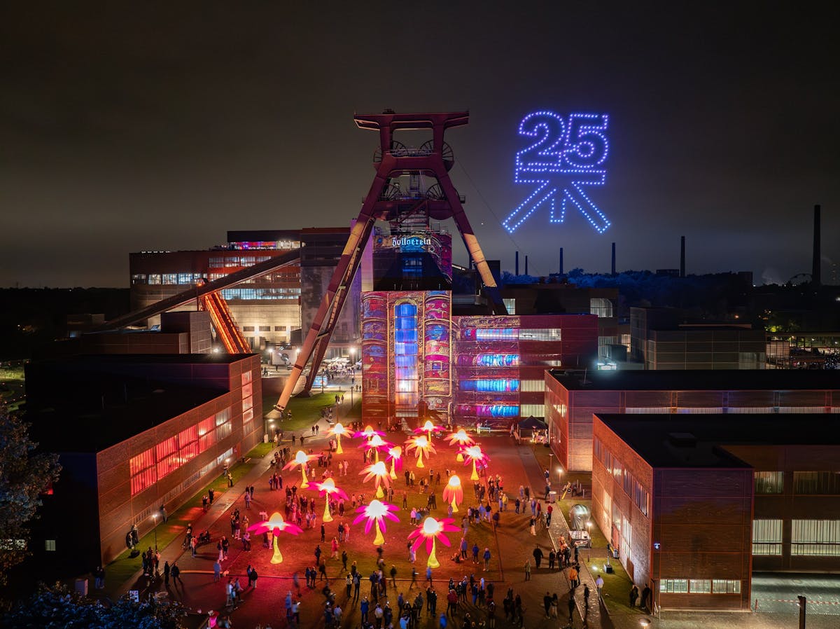Das UNESCO-Welterbe Zollverein hat als erster von insgesamt 27 Ankerpunkten der Route Industriekultur die Jubiläumswochen gebührend eingeläutet. Für geladene Gäste starteten die Feierlichkeiten bereits am Mittwoch, 29. Mai, mit einem exklusiven Festakt. Für die Öffentlichkeit fiel der Startschuss in die Jubiläumswoche am Familientag, Donnerstag 30. Mai, gefolgt von einer Routen-Party inklusive elektronischer Musik (31. Mai), bis zum Besten aus 25 Jahren ExtraSchicht mit spektakulärer Drohnenshow (1. Juni). Beendet wurde die Jubiläumsfeier mit dem UNESCO-Welterbetag (2. Juni).