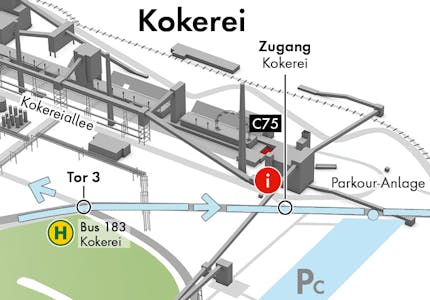 Kontrastreich platziert vor der Koksofenbatterie gehört das 12 × 5 Meter große Becken zu den aufregendsten Bade-Locations der Republik. Wo früher Kohle zu Koks gebacken wurde, werden zwei aneinander geschweißte Überseecontainer heute zum Sommer-Treffpunkt im Essener Norden. Der Poolbesuch ist kostenfrei. Das 2,40 Meter tiefe Becken ist nur für Schwimmer:innen geeignet, ein Schwimmmeister ist vor Ort. Nichtschwimmer:innen dürfen leider nicht ins Becken, auch nicht mit Schwimmhilfen.