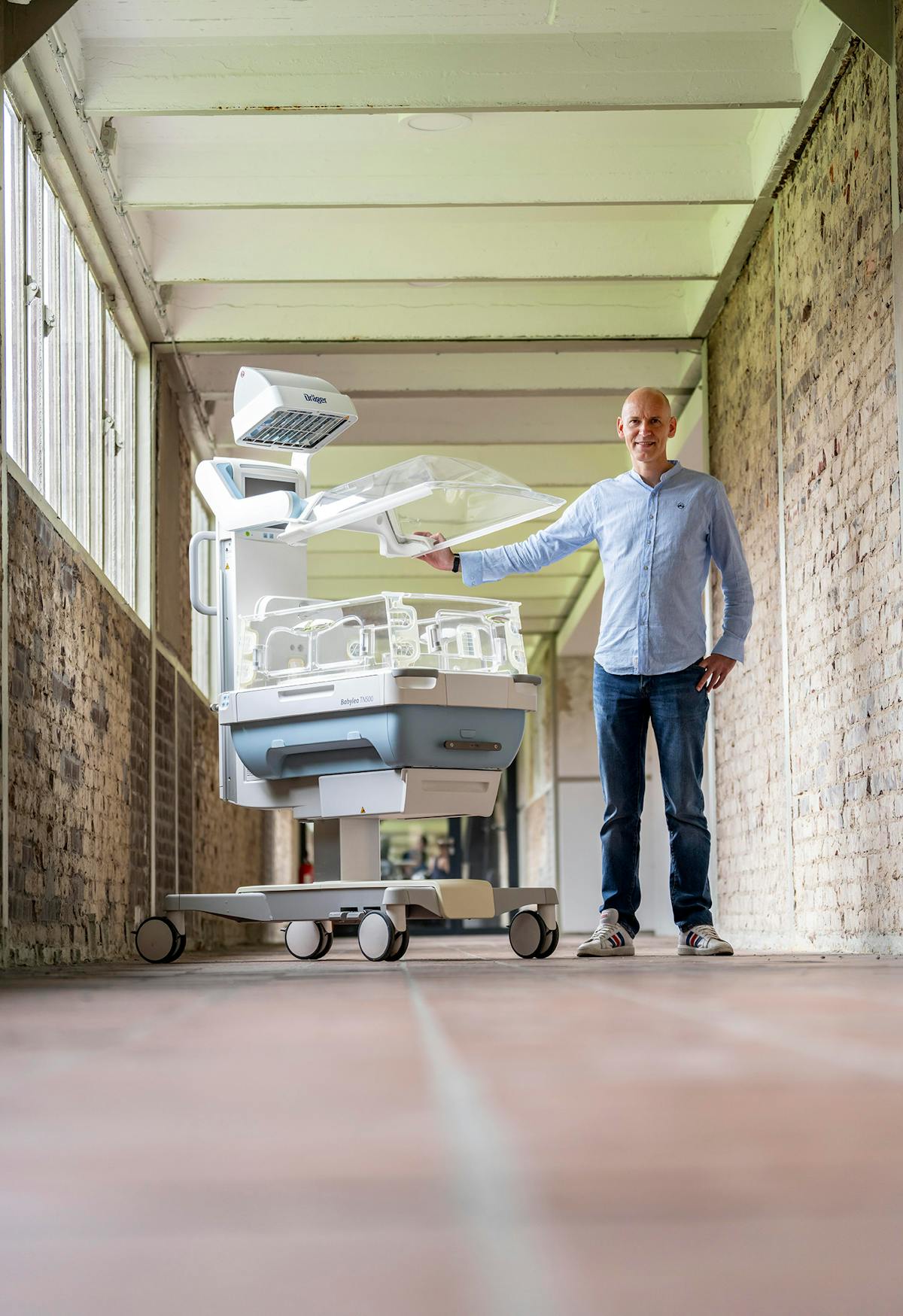 Zollverein ist zudem die bekannteste Adresse in der Region. Die fantastische Atmosphäre des Kammgebäudes rundet das Ganze ab“, erzählt Geschäftsführer Nils Müller. Das Unternehmen hat niederländische Wurzeln, Essen war der erste deutsche Standort. Danach folgten Ulm und Lübeck. Mittlerweile haben die Produktentwickler einen Sitz in den USA in Providence. MMID bedient mit seinen Entwicklungen viele Branchen – von Medizinprodukten über Lösungen für Klimasysteme bis hin zu komplexen und nachhaltigen Automatisierungssystemen. Produkt-­Designerinnen und ­Designer arbeiten Hand in Hand mit Elektro­ und Maschinenbauingenieurinnen und ­-ingenieuren. Rund einhundert Projekte werden so pro Jahr bearbeitet. Eines der Vorzeigestücke ist ein nkubator für Frühgeborene, der zentral im Showroom steht und mit dem Red Dot Design Award ‚Best of the Best‘ und weiteren Preisen ausgezeichnet worden ist. „Wir haben auf Messen, unter anderem in Dubai, bereits Nachahmer aus Asien gesehen“, sagt Nils Müller nicht ohne Stolz – eine schöne Bestätigung der Leistung. Zollverein dient den Produktentwicklern als Inspiration. „Bei Kunden und ebenso bei den Kolleginnen und Kollegen von den anderen Standorten kommt das Welterbe sehr gut an“, sagt Nils Müller. Er selbst ist in Essen aufgewachsen und freut sich, auf Zollverein zu arbeiten.