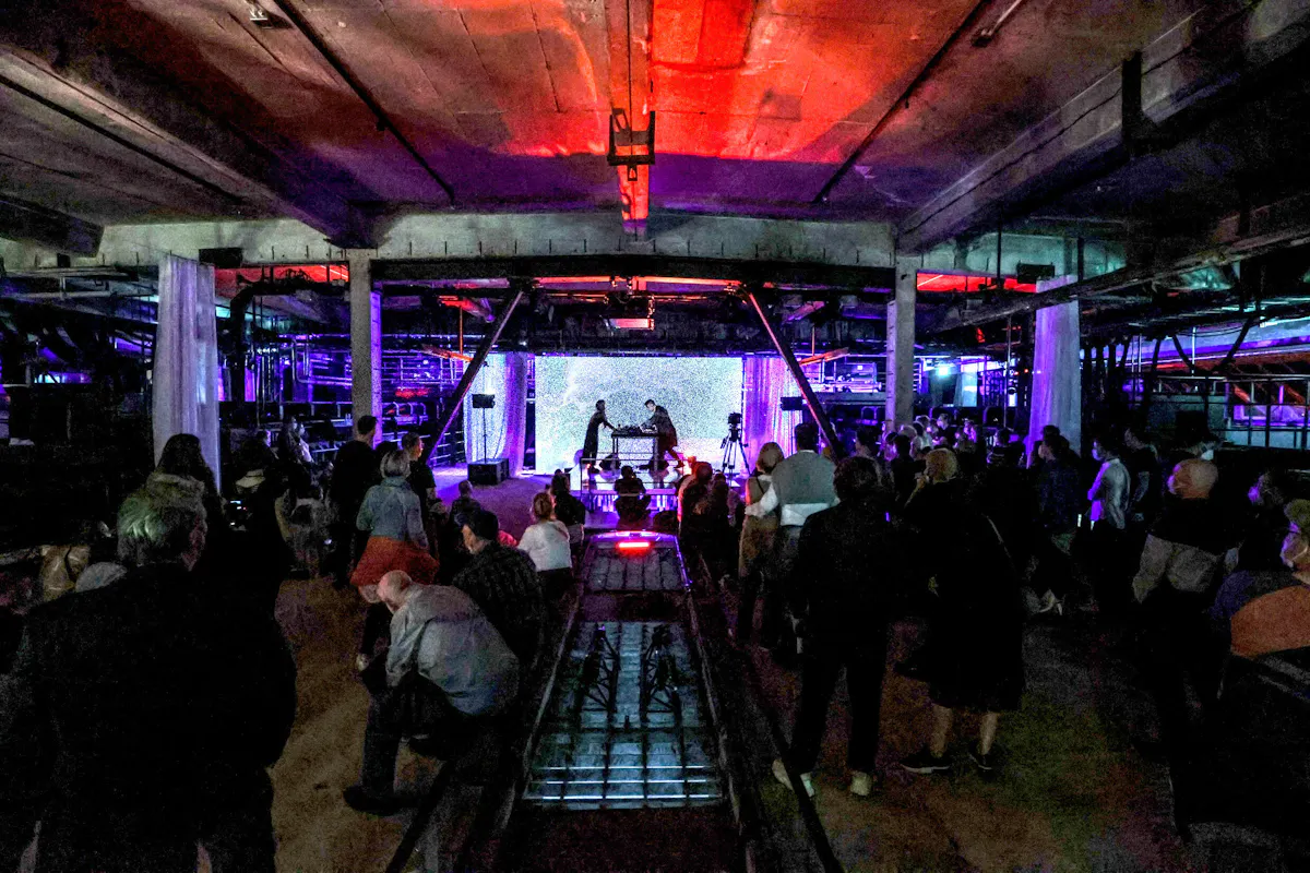 The „Immersive Sound Night” will take place on the 1st of June during the inaugural evening. Renowned international artists are invited to perform experimental electronic sounds and visuals in the Mixing Plant — offering an immersive audiovisual experience in a unique industrial setting. The Immersive Sound Nights are realised in collaboration with MUTEK Montreal, a festival for electronic music and the digital arts.